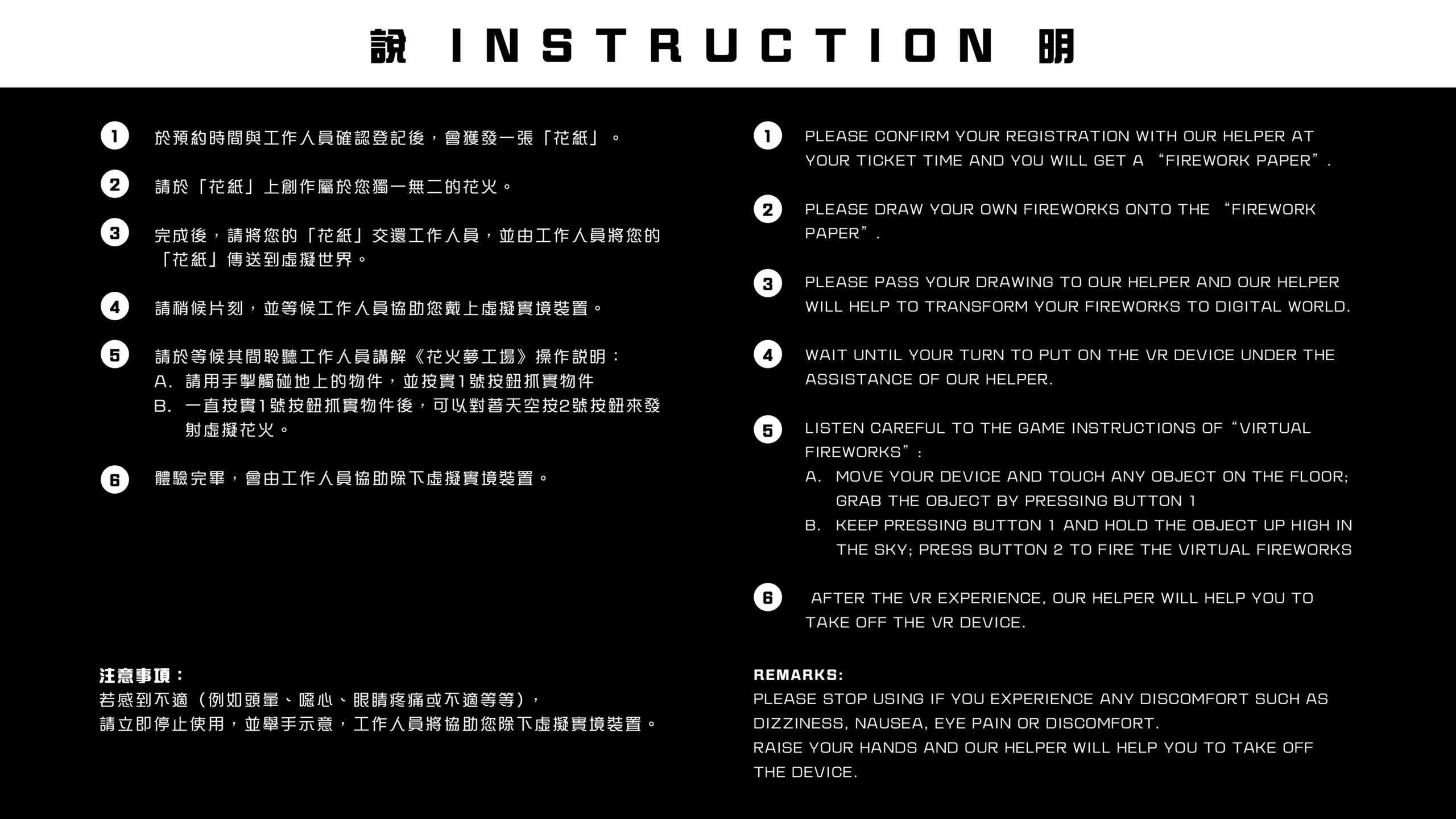 Each participant is invited to make a drawing of a firework of his or her preference. Once completed, the paper is scanned and the virtual firework is presented in a VR world.